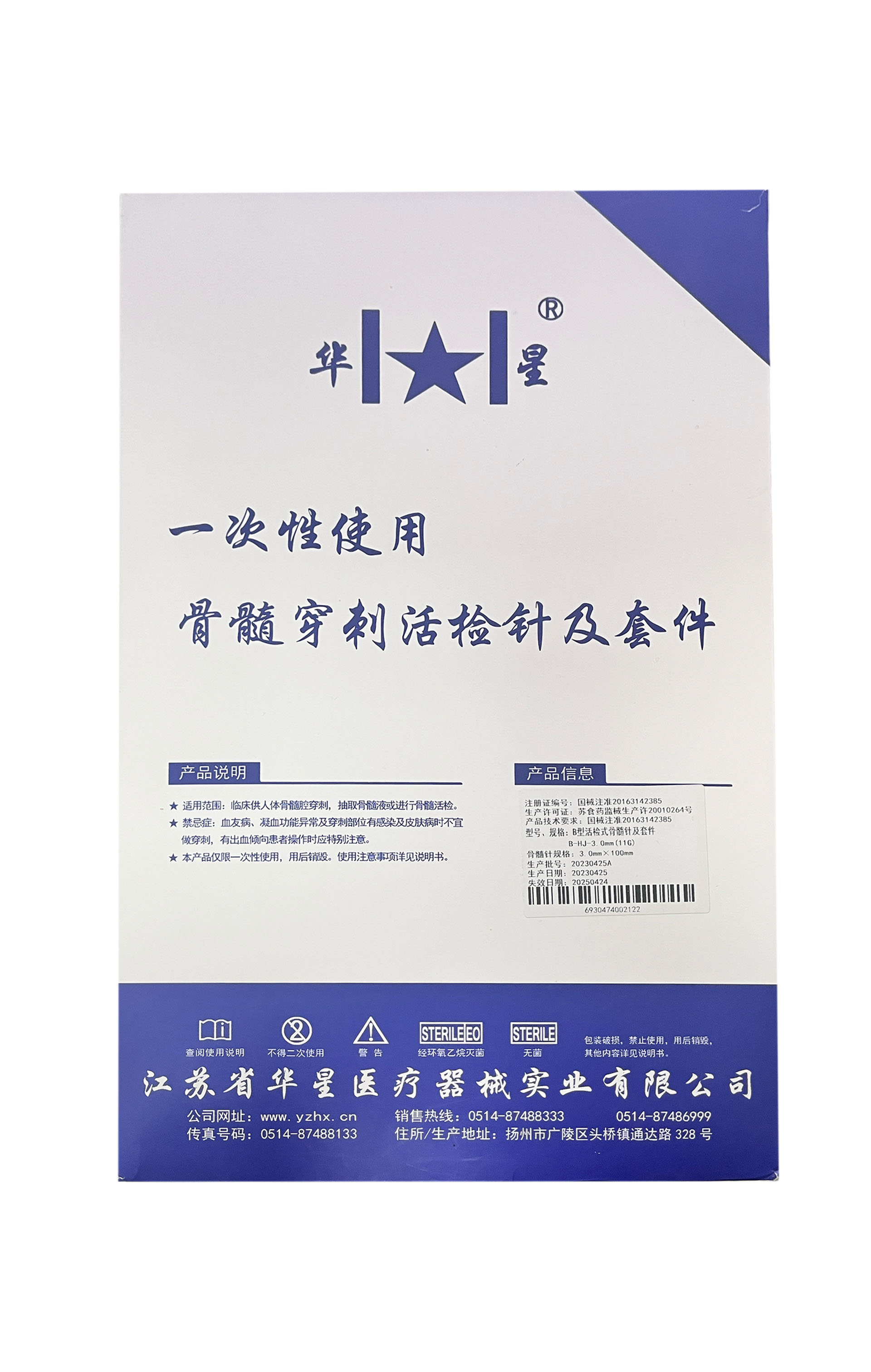 | 2 | 一次性使用骨髓穿刺活检针-活检式 | 2.4 mm、2.7 mm、3.0 mm、3.4 mm | 1支 | ―― | √ | ―― | √ | 自制 | |