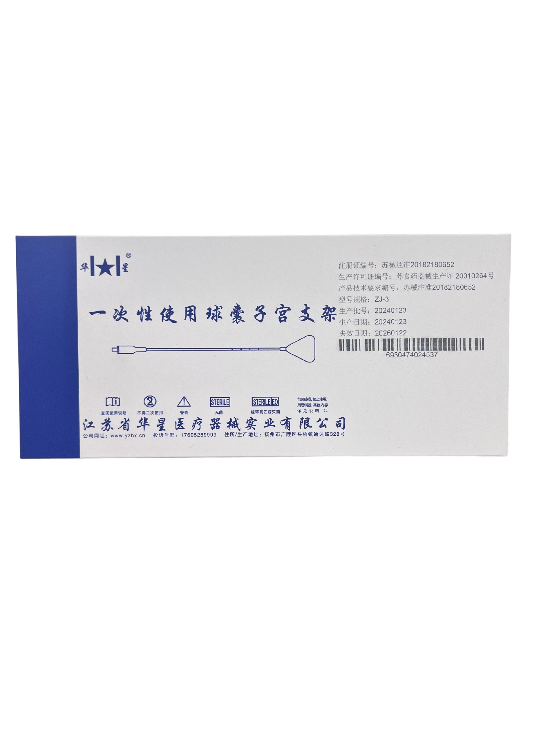 一次性使用球囊子宫支架由导管、球囊、组成,导管、球囊采用符合YY/T 0031-2008中规定的硅胶材质制成,充盈止逆阀由符合GB/T 12672-2009中规定的苯乙烯-丁二烯-丙烯腈共聚物(ABS)制成,产品按照球囊大小分为两种规格型号。产品经环氧乙烷灭菌,应无菌。