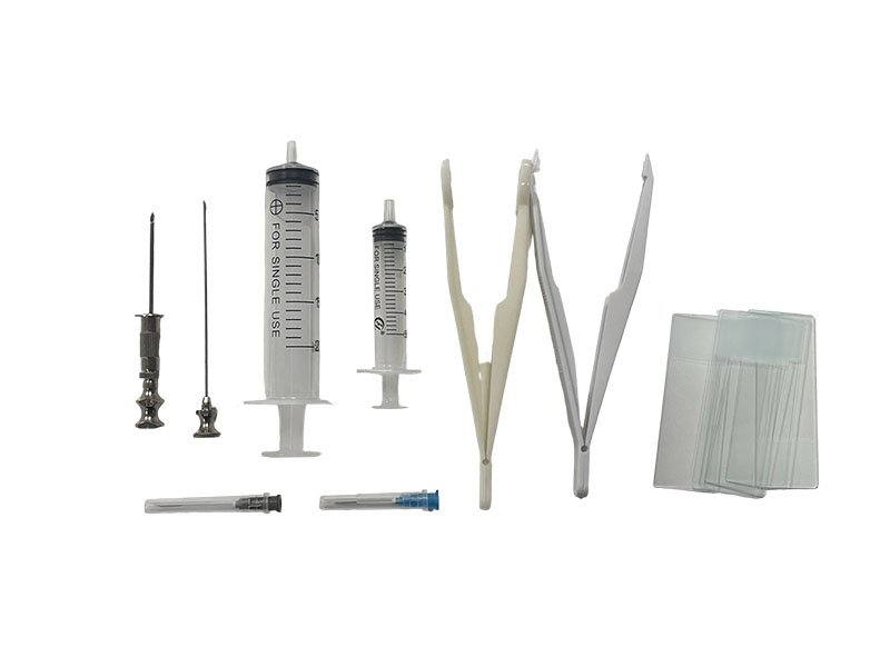 一次性使用骨穿刺包产品基本配置为:胸骨穿刺针、灭菌橡胶外科手套、无菌注射器、无菌注射针。其选用配置为:腰椎穿刺针、全玻璃注射器、脱脂纱布、塑料镊子、洞巾、方巾、创口贴、胶条、棉球/碘伏棉球、玻片、托盘组成。一次性使用骨穿剌包应无菌。