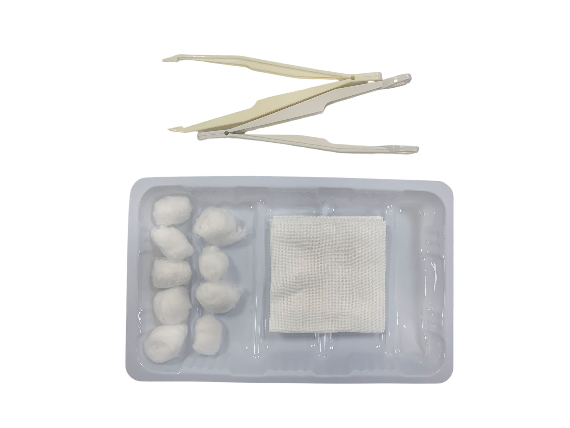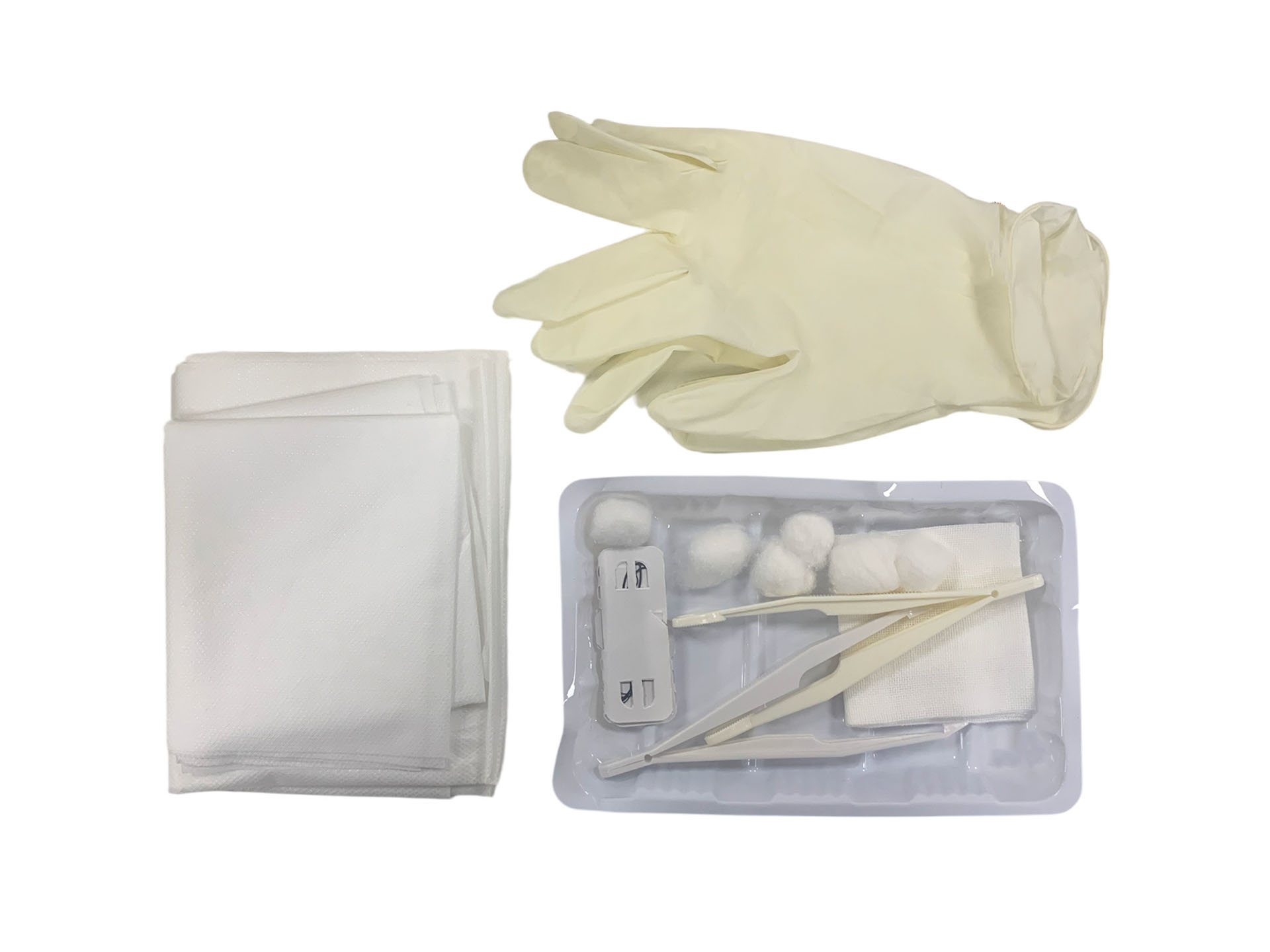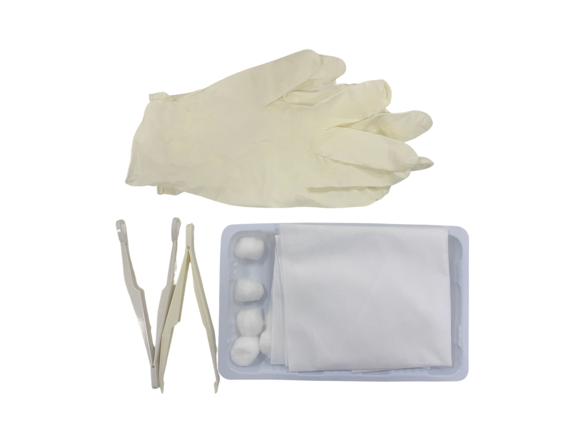 一次性使用清创缝合换药包按配置不同分为两种规格,A型(清创缝合)由非吸收性外科缝线、医用缝合针、纱布叠片、塑料镊子、橡胶检查手套组成,选配洞巾、治疗巾、碘伏棉球、棉球、消毒液刷、棉签、换药盒、器械盘、包布。B型(清创换药)由纱布叠片、塑料镊子、橡胶检查手套或薄膜手套组成,选配碘伏棉球、棉球、消毒液刷、棉签、换药盒、器械盘、包布。产品经环氧乙烷灭菌,应无菌。